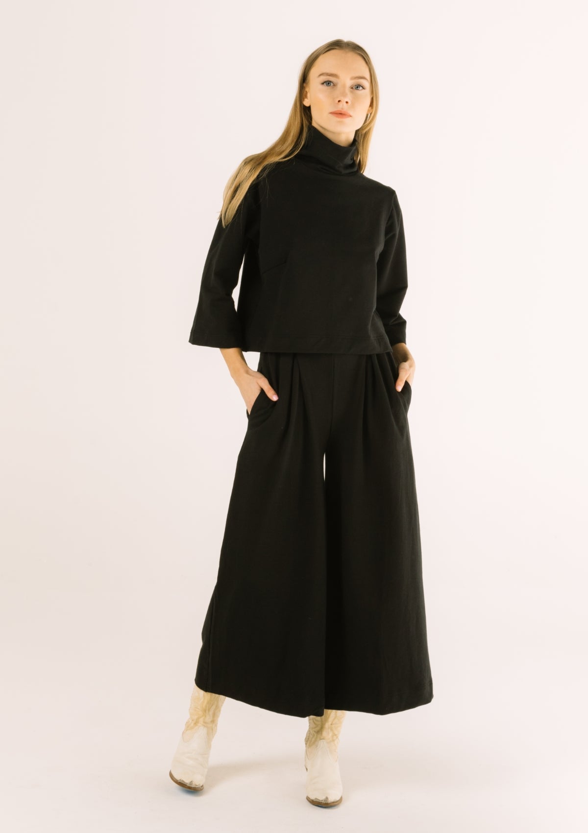 French Terry gauchos? Yeah. You're welcome. Pull these together with the Batna Top for a perfectly chic and comfortable look. Elastic waistband with pockets included.