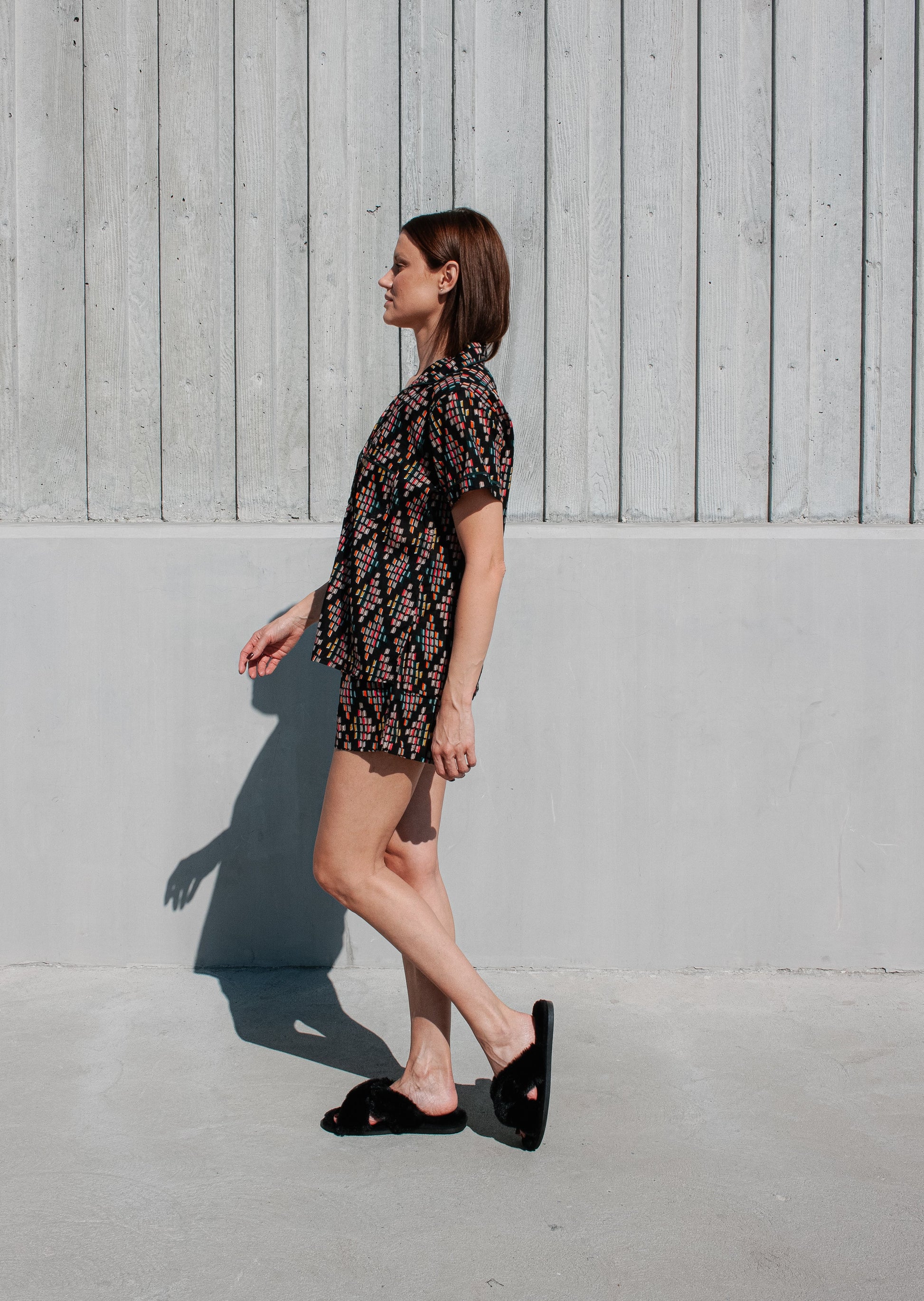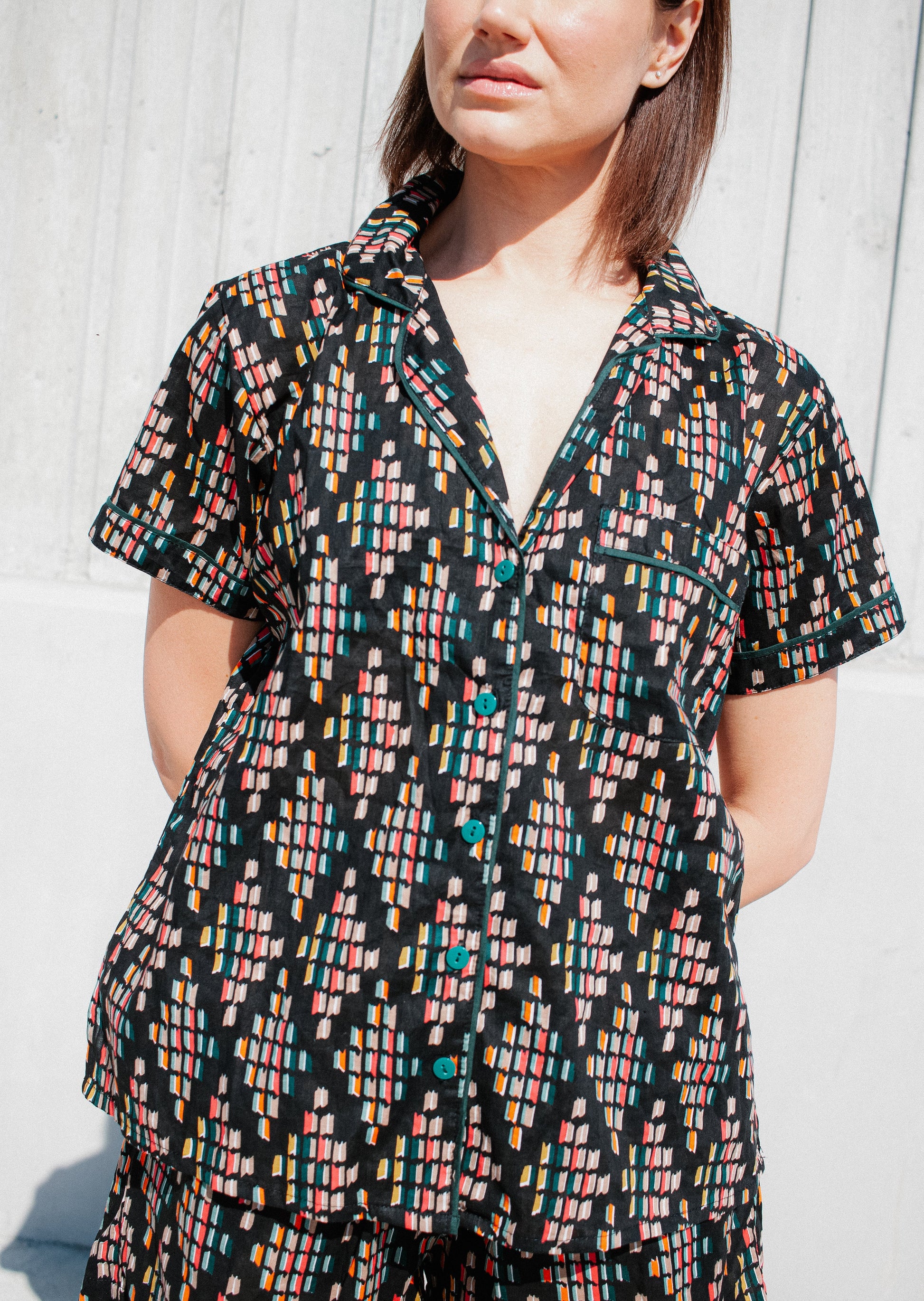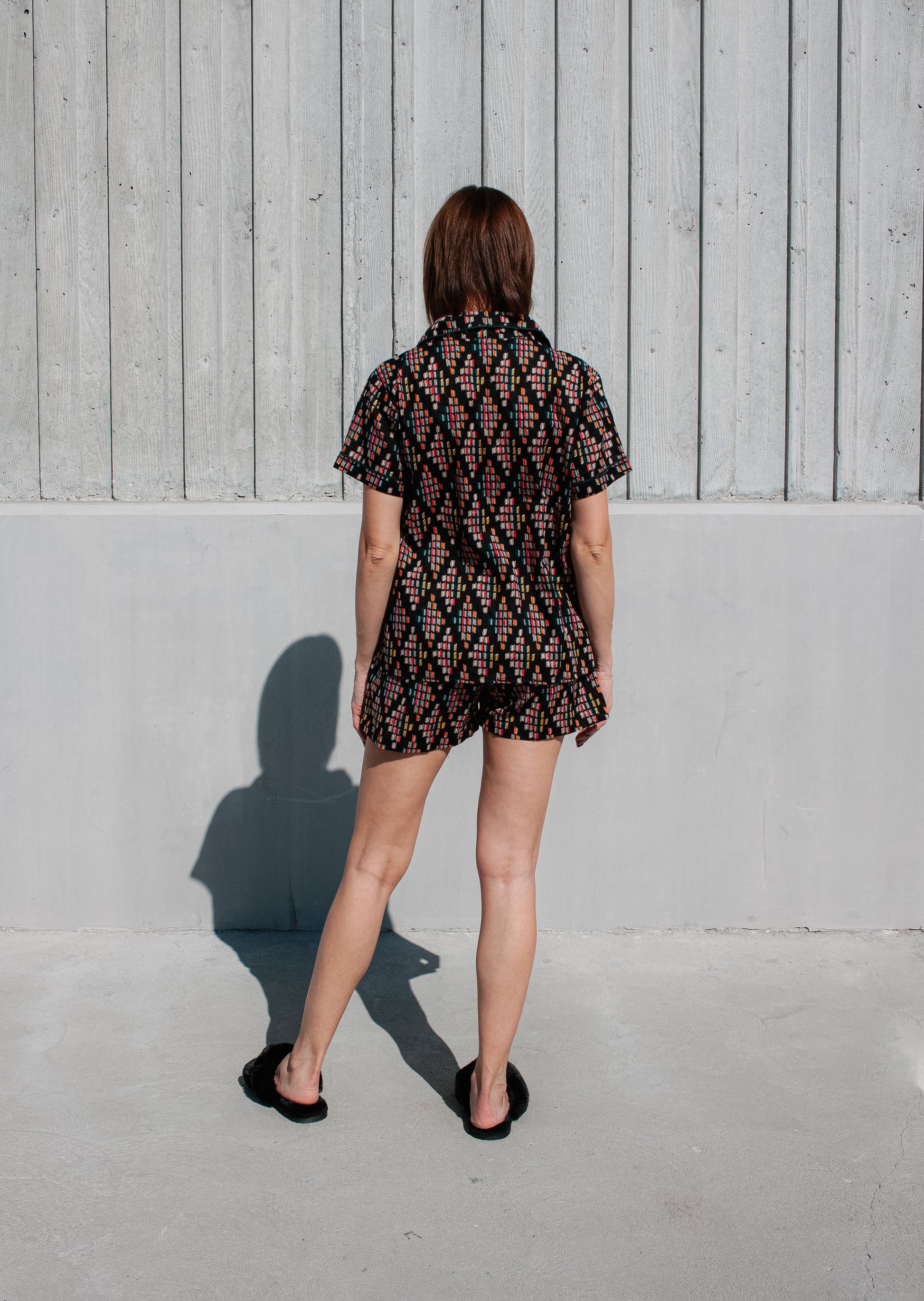 Mandy is sweet like candy. With a short sleeve top and comfy shorts, this sleep set is lovable year-round. Comes with a matching pouch in fun, original prints.