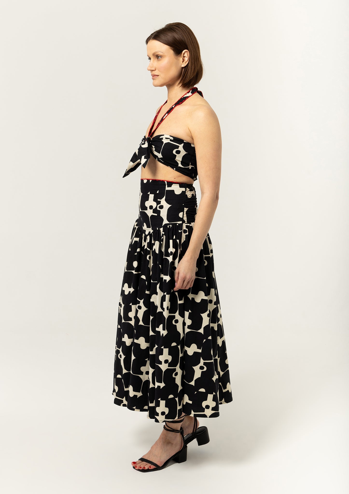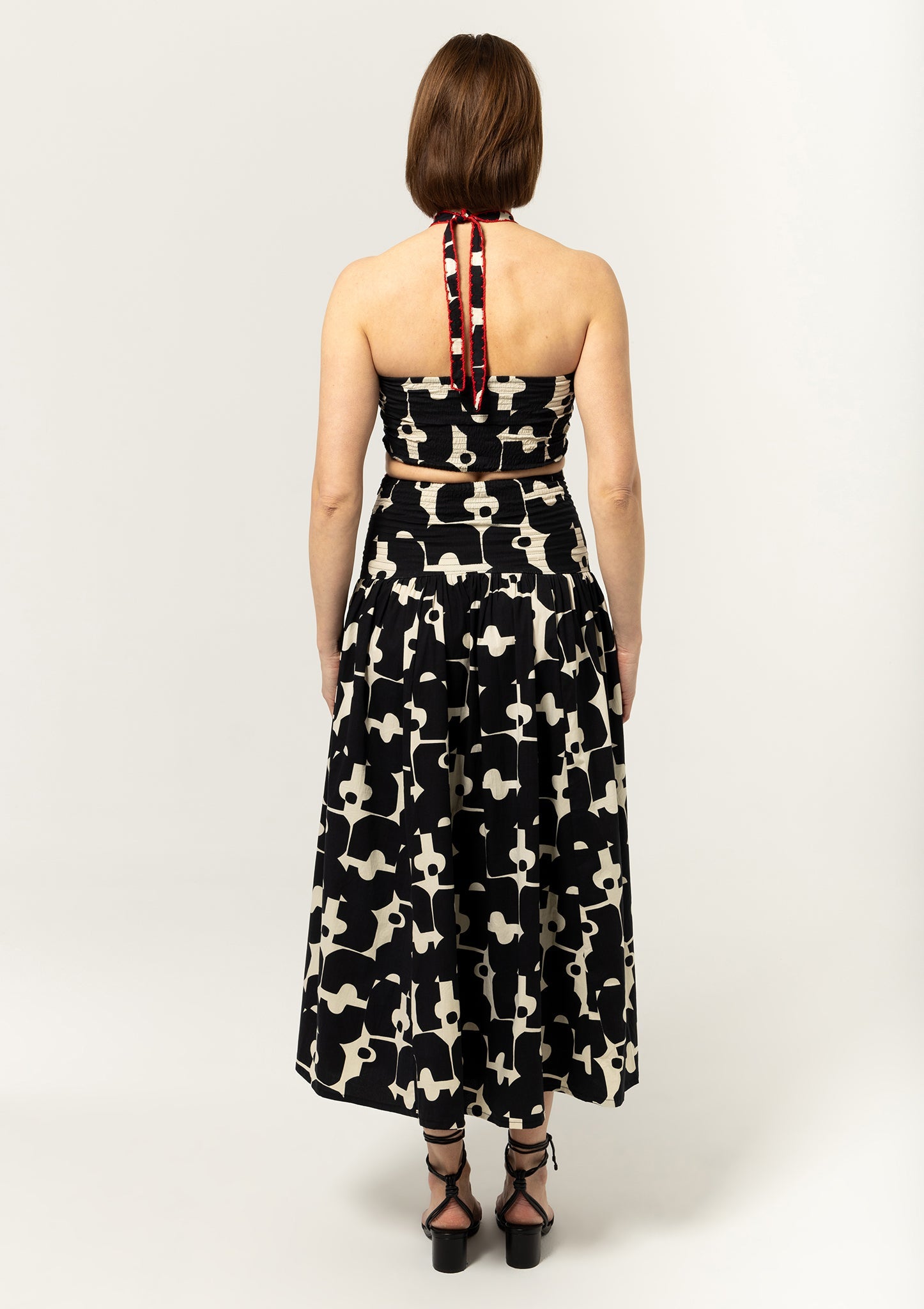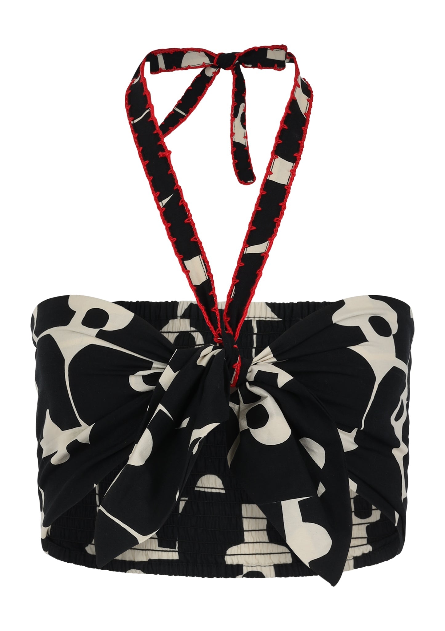 In the mood to turn heads? The patterned Calista Top flirts with a statement bow and stuns with a sweetheart neckline. Completed with crochet detailing.