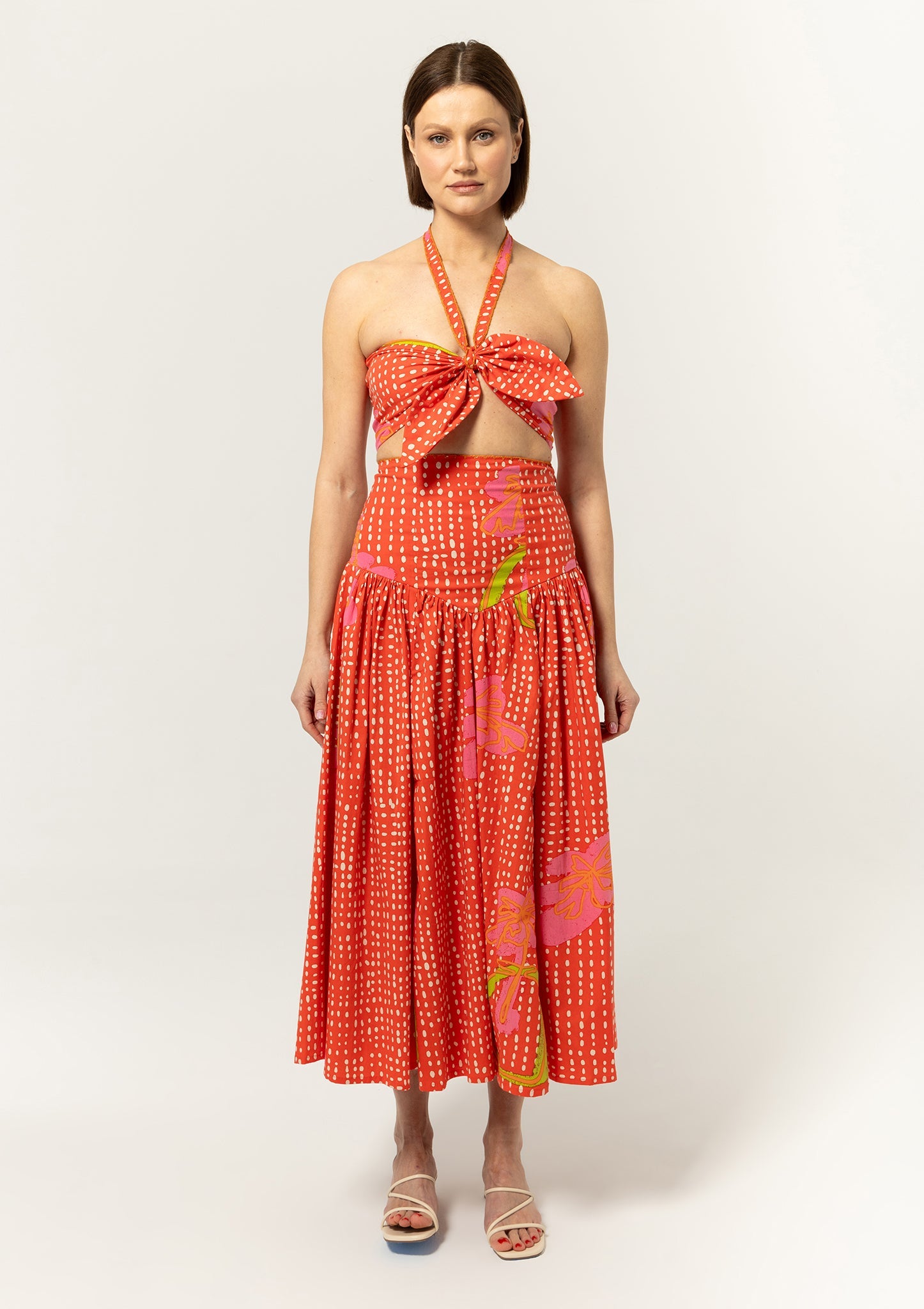 In the mood to turn heads? The Calista Top flirts with a statement bow and stuns with a sweetheart neckline. Completed with crochet detailing. Pair it with the Lennon Skirt for a dreamy getaway look.