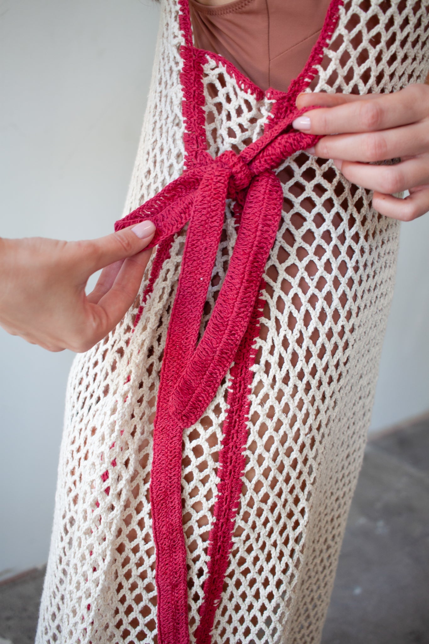 The ocean is calling and the Freya Kaftan is ready to go. A stunning neutral with striking red detailing. Side ties at the waist allow for a flexible fit.