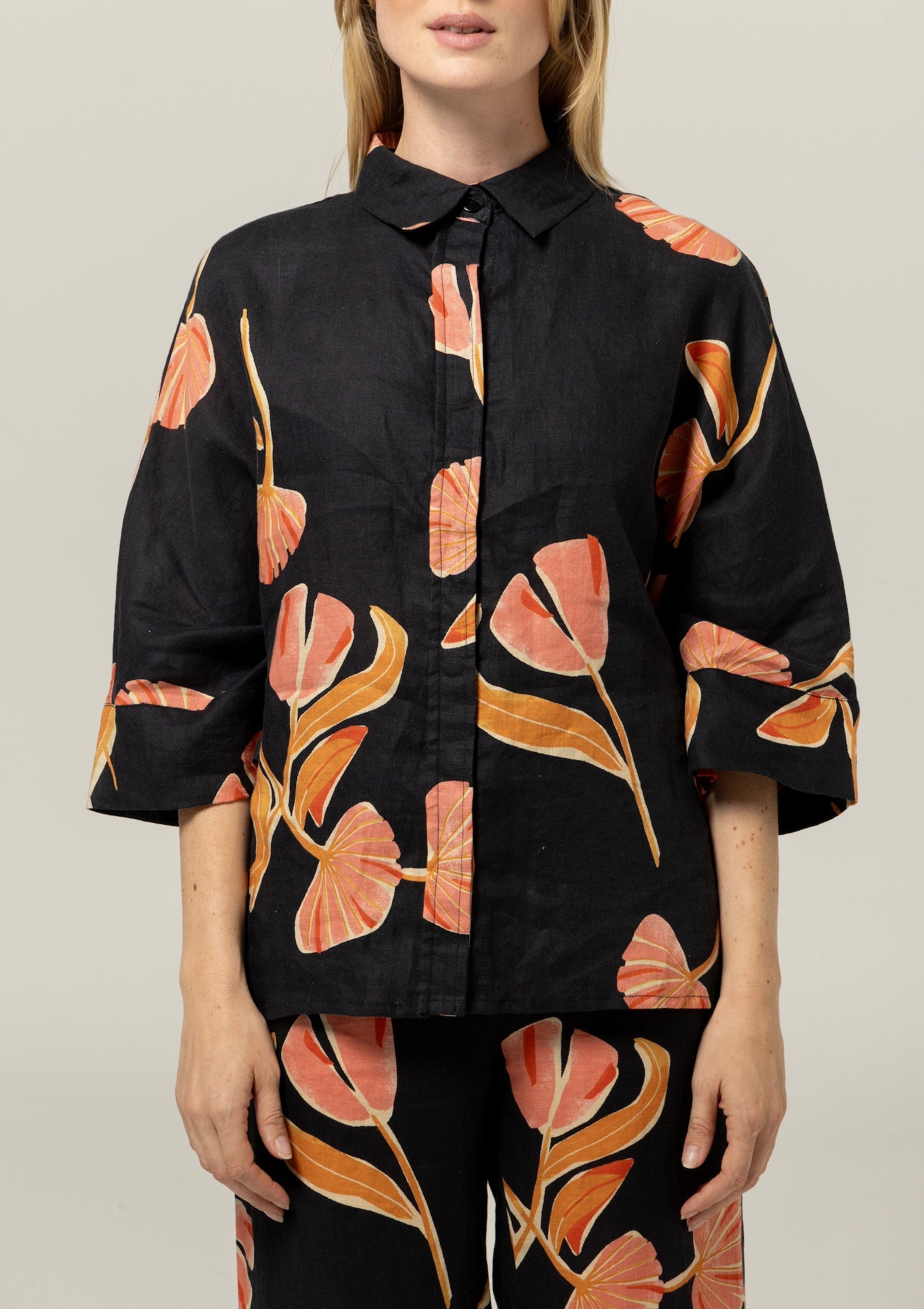 Lightweight and summery linen meets a boxy button up with kimono style sleeves. Enzo is ready to stroll through the farmers market and explore rocky seasides. Pairs perfectly with the Sofia Pant.