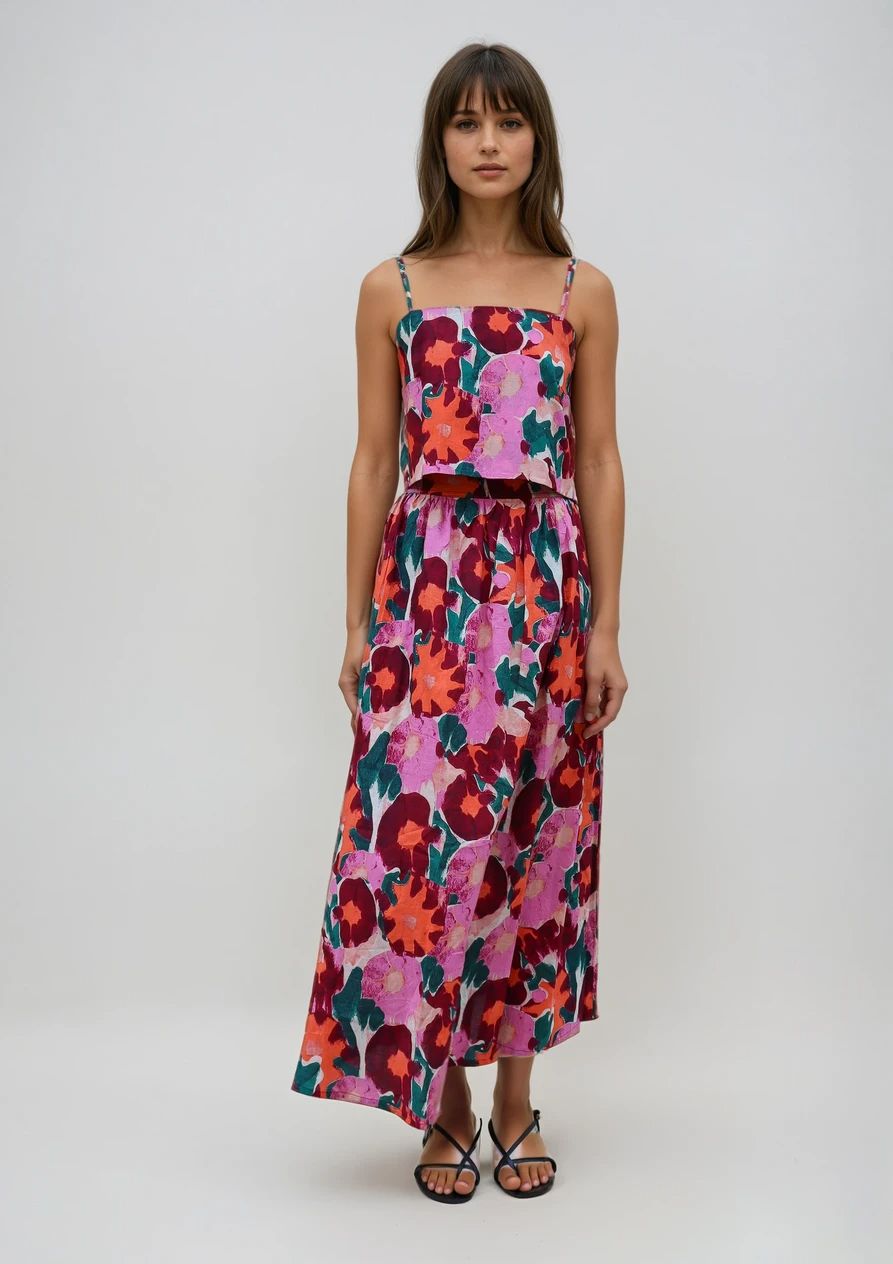 June is a modern classic. A boxy cropped tank in our stand out Cream Alcea print. Side zipper.