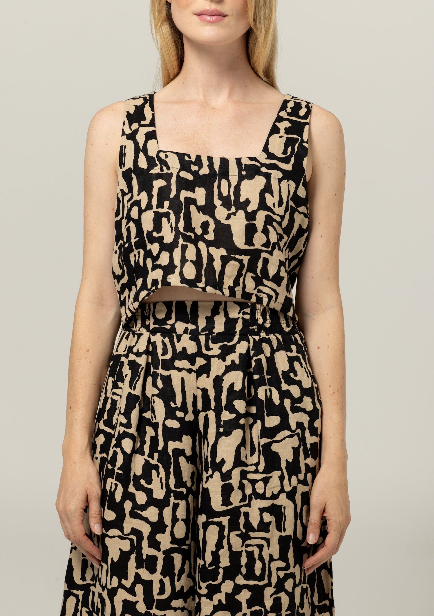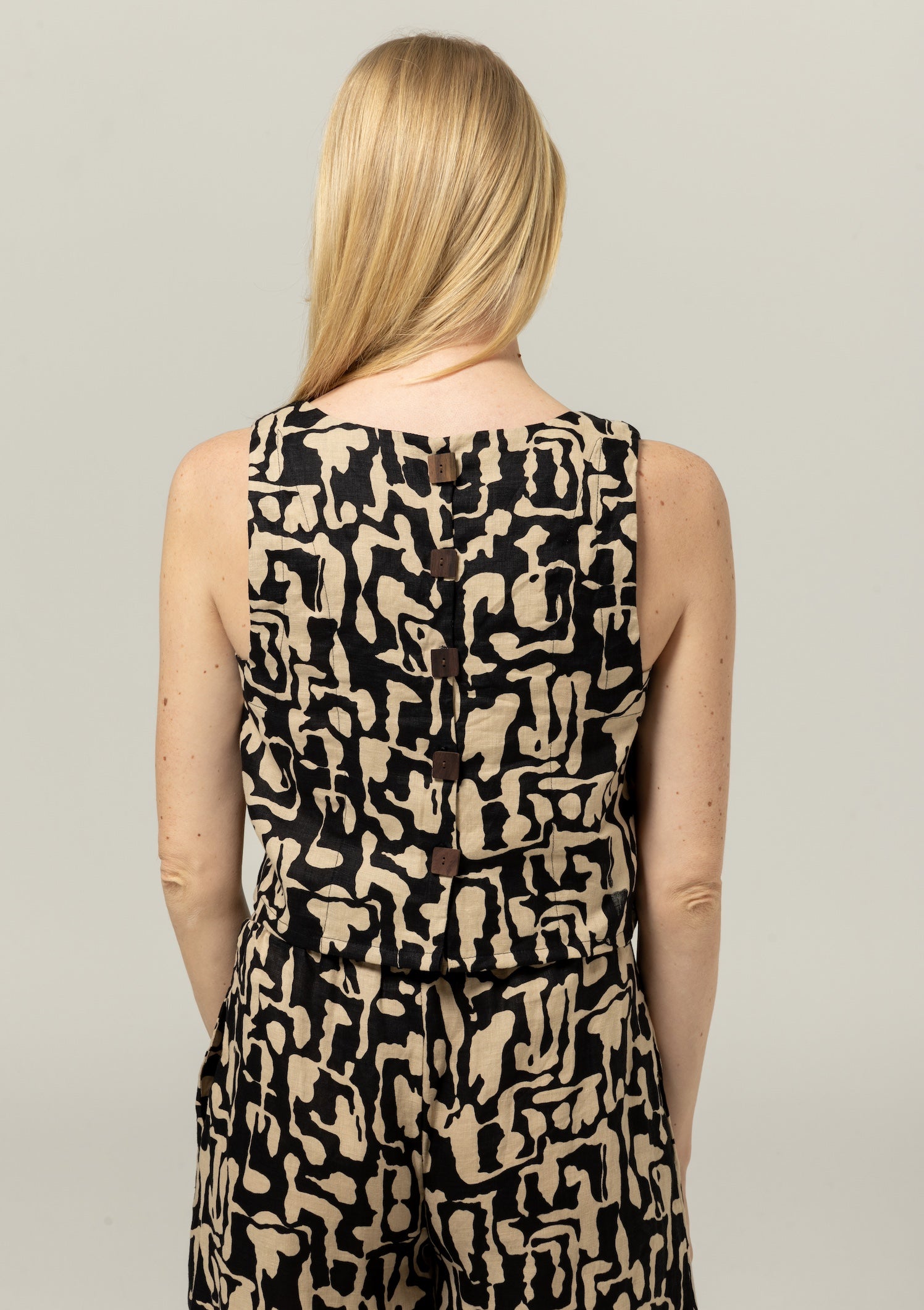 It’s in the details. This apron tank has a squared neckline in the front, the sweetest coconut buttons in the back and does it all in vibrant hues. Pair with the Atlas Pant.