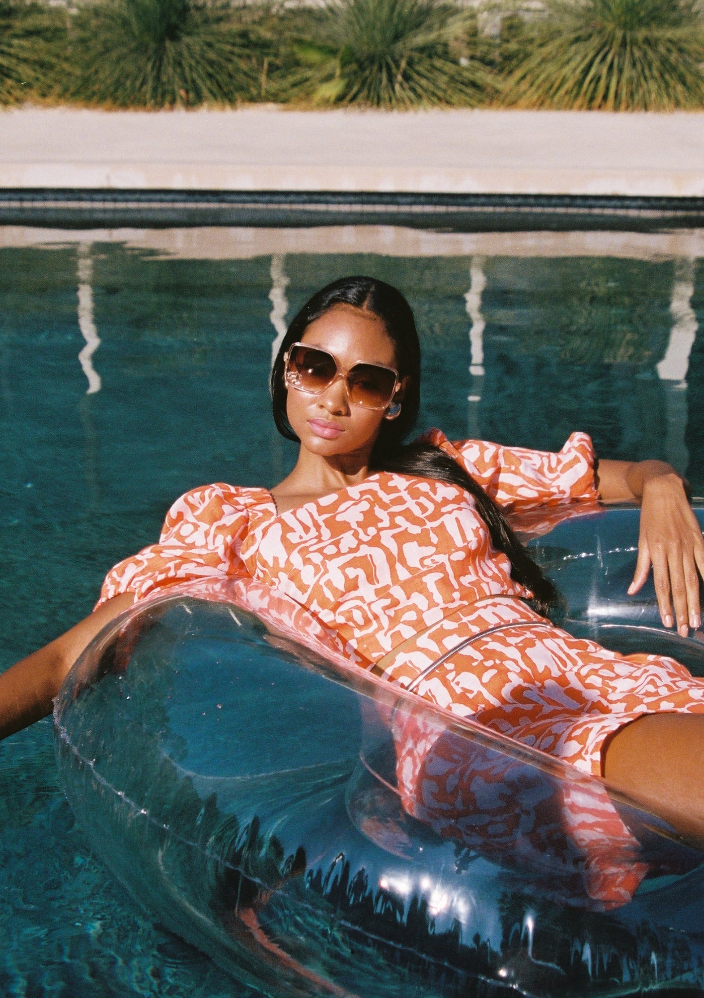 A cropped essential with subtle puff sleeves and cinched detailing for a breezy look and feel. Pair it with the Ramona Short for the perfect match.