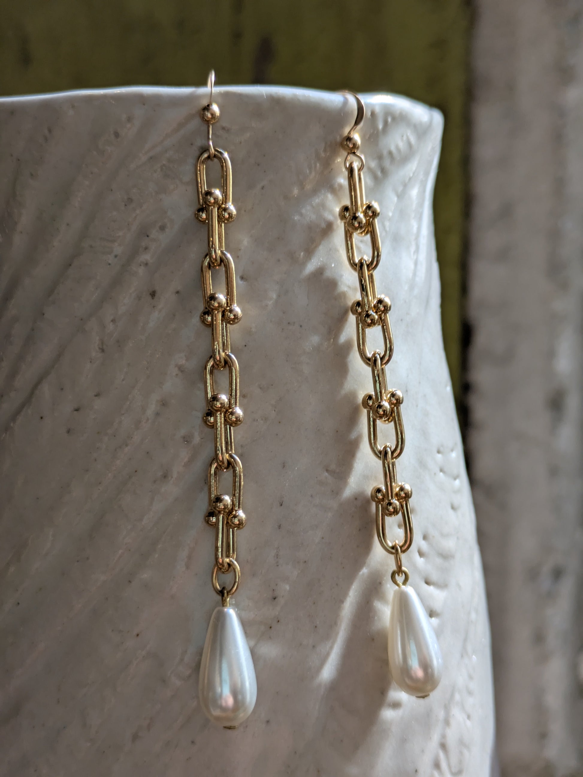Sheila B. Gold Dumbbell Chain with Pearls Earrings