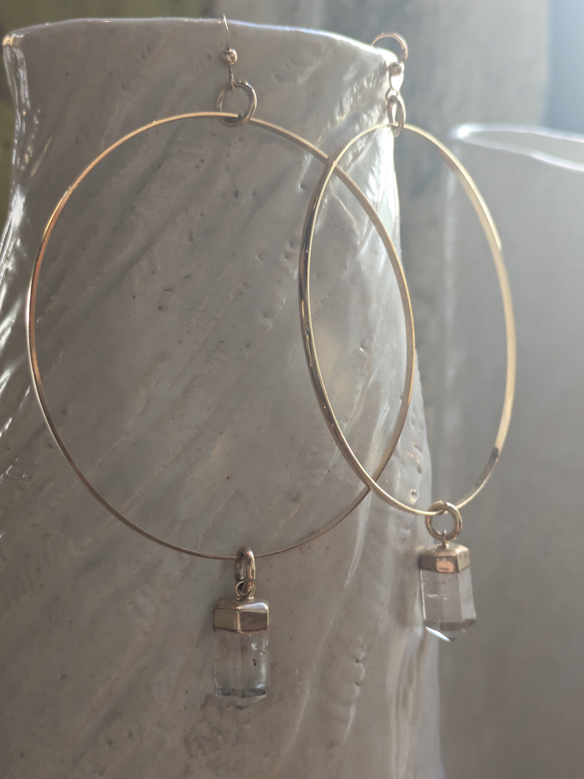 Made from 24K Gold overlay hoop with 24K electroform Herkimer Diamond - Hoop size shown Large